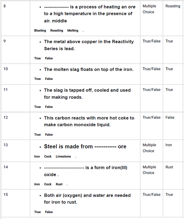 l)       ---------------- is a process of heating an ore to a high temperature in the presence of air. middle